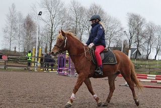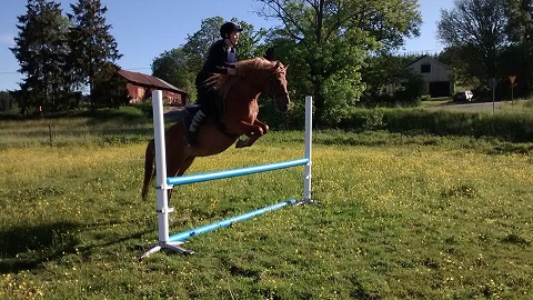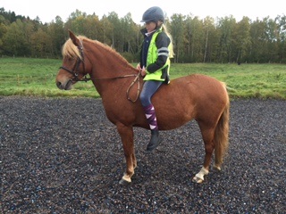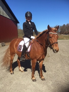 Hon har varit på ridskola och hon är tävlad i både hopp och dressyr.